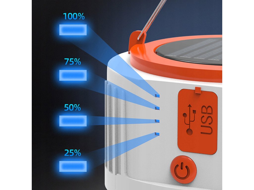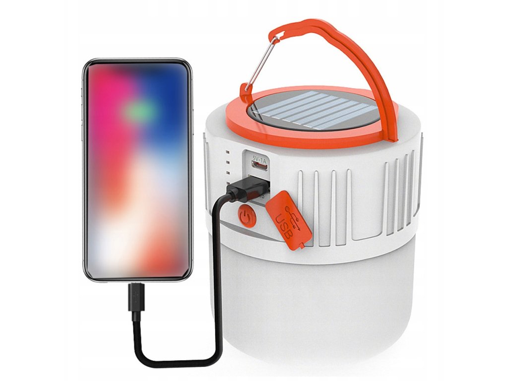 Solární lucerna - svítilna do stanu s powerbankou / nabíječkou